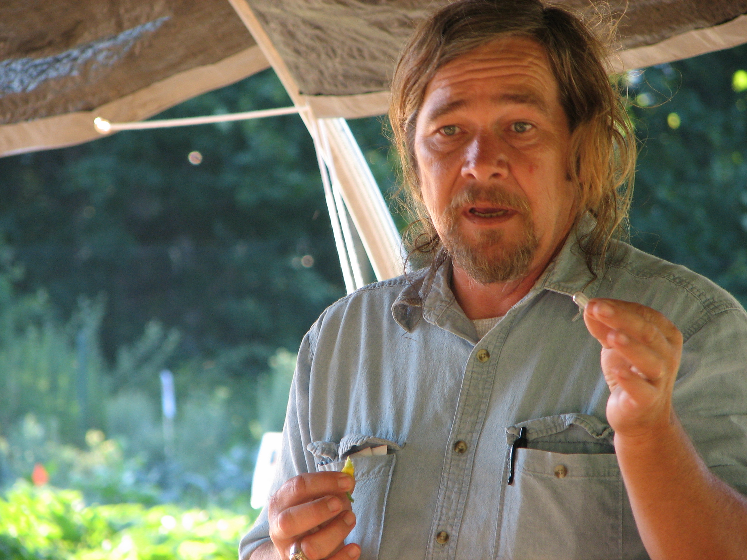 ![]() From Left to right: farmer-breeder Ken Ettlinger and public sector breeder's Jim Myers (OSU) and George Moriarty (Cornell). Jim and George have been involved in breeding projects on blight-resistant tomatoes, beans for the processing industry, powdery mildew tolerant Costata Romanesco squash, earlier cucumbers, anthocyanin-rich tomatoes and more. What a rare treat to hear from two of America's foremost plant breeders. Organic farmer, Phil Barbados, participant in the Organic Seed Partnership sells his produce at farmers market in Westhampton, NY ![]() ![]() Naturalist and Garlic Grower Tom Stock can't resist Vanguard 75, contributed to the OSP program by USDA-Salinas. Now difficult to find seed of unless you raise your own, Vanguard is a crisphead lettuce that is disease resistant and performs well on Long Island's sandy soils. ![]() Elizabeth Dyck coordinates the OSP (Organic Seed Partnership) program for NOFA-NY and is an important link between the organic farming community, small seed companies and plant breeders. The OSP is in it's last year of funding. ![]() Mindy Block, owner of "Parsley's Garden", Port Jefferson and farmer advocate. ![]() ![]() Organic Insect Control ![]() Founder of the Historical Society Westhapton Beach, NY, Farmers Market, Elsa Collins ![]()