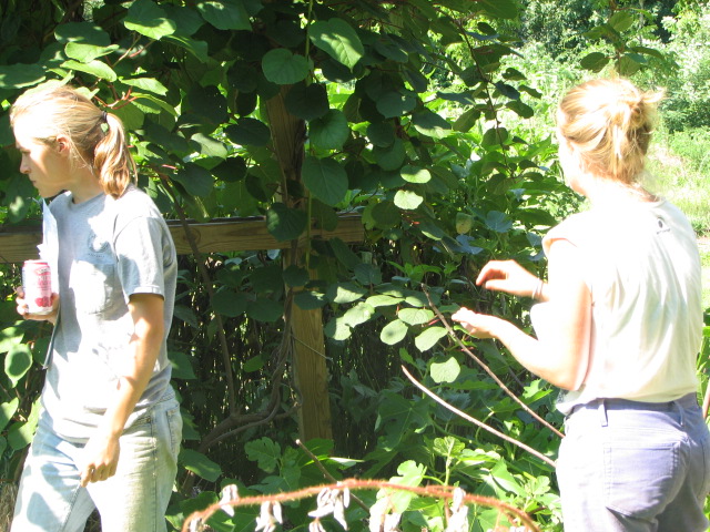 ![]() Over 40 people turned out to tour the gardens at Flanders Bay Farm and learn about breeding for organic systems. Farmers and NOFA Folks on Long Island had an opportunity for hands-on training in selecting for improved vegetable varieties—from two outstanding public sector (university) vegetable breeders. Jim Myers from Oregon State University and George Moriarty from Cornell University. ![]() Scott Chasky, president of the Long Island NOFA chapter and manager of the Peconic land Trust's Quail Hill Preserve operates a large CSA. ![]() NOFA members learn about the history of the Oregon State University Broccoli that has been selected for it's performance in organic systems both in the northwest and northeast U.S. ![]() Jim Myers from Oregon State University talks about record keeping in the field using a hand held PDA and Spreadsheet Software. ![]() Once a cucumber or melon flower is pollinated, to protect it from insect crossing George Moriarty demonstrated the use of large gel capsules which are placed over the female blossoms. ![]() East meets West: Cross made on Flanders Bay Farm in 2006 uses OSU 19 as female and Cornell's Harlequin as the male. The third year of selecting OSU Broccoli seems to be showing two potential breeding lines: a very tender long neck kind and a very large beautiful domed head kind. The group spent time talking about characteristics that make the best broccoli for both consumer and organic grower. ![]() ![]() Rows of bush squash ready to practice hand pollination on. ![]() ![]() New Zealand Kiwi Vines don't escape notice now in the seventh year from seed and full of fruit. |